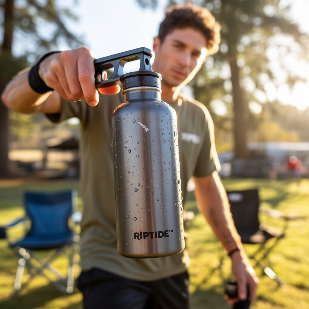 RIPTIDE™ is a patent-pending stainless steel bottle with an integrated shotgun hole, allowing you to chug drinks fast—just like shotgunning a can—but without the mess, tools, or awkward hacks.
